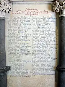 The cathedral contains the throne and memorial to Bishop Harper, the first Bishop of Christchurch and the second Primate of New Zealand, who laid the foundation stone in 1864 and preached at the consecration service in 1881.[35] In the west porch are stones from Canterbury Cathedral, Christchurch Priory, Tintern Abbey, Glastonbury Abbey, Herod's Temple, St Paul's Cathedral and Christ Church, Oxford.[36]