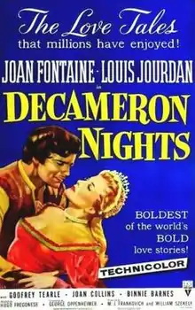 Decameron Nights is a 1953 anthology Technicolor film based on three tales from The Decameron by Giovanni Boccaccio, specifically the ninth and tenth tales of the second day and the ninth tale of the third. It stars Joan Fontaine and, as Boccaccio, Louis Jourdan.