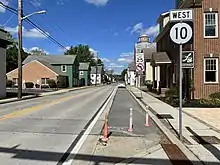 The road was constructed as a state highway between Woodside and Rising Sun in 1931 and between Willow Grove and Woodside the following year.[24][25] DE 10 Alt. was designated by 1988 onto its current alignment.[22] Prior to 2004, the South State Street portion of DE 10 Alt. was concurrent with US 113 Alt., which was decommissioned when US 113 was truncated from Dover to Milford.[16][17]