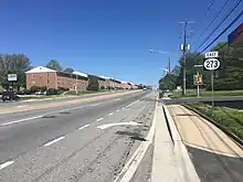 By 1984, DE 9 was realigned to follow DE 273 east of the DE 141 intersection.[17] DE 273 was realigned to bypass Christiana a year later, having previously followed Main Street through the community.[18] DE 2 was routed to bypass Newark and DE 2 Bus. became concurrent with DE 273 through Newark by 1990.[19] In 1997, DE 273 was moved to its current alignment in the Ogletown area, eliminating a short concurrency with DE 4 and involving the construction of an interchange with that route. The former alignment of DE 273 through Ogletown is known as Ogletown Road.[20][21] The concurrent DE 2 Bus. designation was eliminated in 2013 as part of simplifying the route numbers in Newark.[22] By 2015, DE 273 signage was cut back to its current eastern terminus, removing the concurrency with DE 9.[4]
