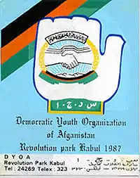 The Democratic Youth Organisation of Afghanistan (Dari: سازمان دموکراتیک جوانان افغانستان, Sâzmân-e Damukrâtik-e Javânân-e Afghânistân), also known as the People's Youth Organisation of Afghanistan, was the main youth organisation in the former Democratic Republic of Afghanistan. It was the youth wing of the ruling People's Democratic Party of Afghanistan (PDPA). Upon turning seventeen years of age, members of the DYOA would become eligible for membership in the PDPA. By June 1978 the organisation had around 4,000 members.[2]