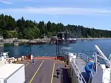 Regular ferry service links Denman Island to both Hornby Island from Gravelly Bay on the east side of Denman and across Baynes Sound via the MV Baynes Sound Connector cable ferry to Buckley Bay on Vancouver Island on the west side. The Village of Denman consists of one general store and Post Office, two community halls and a museum, the Dora Drinkwater Volunteer Library, a community school, an Anglican church and the Arts Centre. There is also a hardware store, craft store and Abraxas Book Gifts, a book and gift store and coffee shop.[8] Around the corner on Piercy Road is the Denman Island Health Centre.[9]