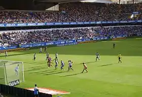 Depor's best Champions League campaign was in the 2003–04 season, where they lost to eventual winners Porto by a narrow 1–0 aggregate scoreline in the semi-finals.[14] Although this was their best Champions League campaign, the club also had its biggest defeat in European competitions, losing 8–3 to Monaco in the group stage.[15] However, this campaign is also remembered for their stunning comeback against Milan in the quarter-finals. Milan won the first leg 4–1 at San Siro, but in the second leg at Riazor, Deportivo won 4–0 and eliminated the defending champions 5–4 on aggregate.[16][17]