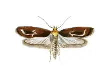 The genus' type species is the parsnip moth. Its scientific name has been much confused for about 200 years. Adrian Hardy Haworth, on establishing the genus Depressaria in his 1811 issues of Lepidoptera Britannica, called the eventual type species Phalaena heraclei, an unjustified emendation of P. (Tortrix) heracliana. In this he followed such entomologists of his time as Anders Jahan Retzius, who in 1783 had believed the parsnip moth to be a species originally described by Carl Linnaeus in 1758. But in fact, this was a misidentification; Linnaeus' moth was actually the one known today as Agonopterix heracliana. To make matters worse, John Curtis popularized another incorrect spelling, D. heracleana, apparently first introduced (as Pyralis heracleana) by Johan Christian Fabricius in his 1775 Systema Entomologiae.[2]