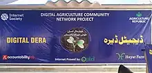 Digital Dera "ڈیجییٹل ڈیرہ" is an initiative to digitalize the agriculture sector in remote fertile lands of South Punjab by providing a community internet network to local farmers.[1][2][3][4][5] It was established with the collaboration of Agriculture Republic,[6] Internet Society,[7] Accountability Lab, PTCL, and Hayat Farms in remote agricultural land of Chak No. 26/SP, District Pakpattan.[8][9][10] It aims to provide free internet connectivity for better access to digital agricultural resources. The future goal is to introduce agriculture-based smart villages through IoT integration.[11][12]