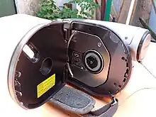 Additional possible features include a viewfinder (usually digital), a pressure-sensitive knob for zooming at a controllable speed, LED lamp for illuminating in darkness – possibly with an option to adjust automatically, night vision which may be assisted by an infrared lamp, still photography, the ability to capture still photos while filming – usually at a higher resolution than the video, the ability to lock the OIS on far subjects while zoomed in (named "OIS Lock" by Panasonic), the ability to buffer footage before pressing the "record" button to avoid missing moments without having to be constantly recording (named "PRE-REC" by Panasonic), the ability to keep the lens cover open for few minutes into stand-by mode for rapid restarting, internal storage for recording when the inserted memory card's space is exhausted, autofocus able to track objects, and optional visual effects during video recording and playback.[10]:p37[11][12]