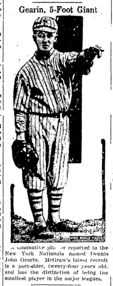 Dennis John Gearin (October 15, 1897 – March 11, 1959) was a former Major League Baseball pitcher. He played two seasons with the New York Giants (1923–1924) and Boston Braves (1924).[1]