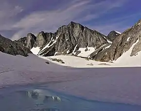 The Alpine Lakes Wilderness features some of the most rugged topography in the Cascade Range with craggy peaks and ridges, deep glacial valleys, and granite walls spotted with over 700 mountain lakes.[4] Geological events occurring many years ago created the diverse topography and drastic elevation changes over the Cascade Range leading to various climate differences.