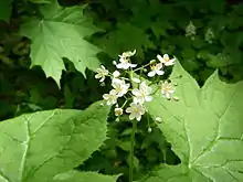 Diphylleia cymosa, the umbrella leaf, is an ornamental plant of the family Berberidaceae, which is native of United States. It is endemic to the deciduous forests of the southeast United States and blooms in the late spring.