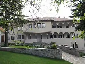 Later, the monks Arsenius and Maksimus were recorded in the Kardzhali pogrom in 1796, on the territory of Ponišavlje district; two years later, in 1798, a well was dug for the monastery.[41] Before the battle of Čegar, the monastery was burned during the First Serbian Uprising in 1809. Thereafter, the monastery library and whole church interior were reconstructed, and the sponsor of this work, Thracian guild from Pirot, donated an icon of St. Spyridon in 1820.[42] In 1873, the narthex was demolished, and in 1876–77 the monastery quarters were burnt with the fire reaching the library and destroying two parchment manuscripts.[43] After the liberation from the Turks in 1878, it was decided a new church should be built with construction beginning in 1902 and ending in 1908.[2] In 1902, the nave was demolished and after that the church was completed as it stands today.[3] The author of the new church was the architect Milorad Rudivić.[3] During the Bulgarian occupation between 1915 and 1916, Bulgarians looted and vandalized the monastery, which was the last seen of an old record which told of how St. Sava spent a time at the monsatery.[4]