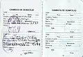 Earlier Identity cards in Argentina came in the form of paper booklets in a green cover for Argentines, Bordeaux cover for foreigners, much like modern day passports. On the outside, the Emblem of the Argentine Republic Republic as well as the words "Mercosur" "REPÚBLICA ARGENTINA" ("Argentine Republic"), "DOCUMENTO NACIONAL DE IDENITDAD", "REGISTRO NACIONAL DE LAS PERSONAS LEY 17.671" ("NATIONAL REGISTRY OF PERSONS LAW 17,671"), are embossed. Inside the cover page there was a place for votes proofs and addresses change. They also had the legends written "MENOR DE 16 AÑOS"(under 16 years)[23] and "EXTRANJERO"[24] (foreigner), respectively.[25] Inside the cover page there is a notice to the bearer: