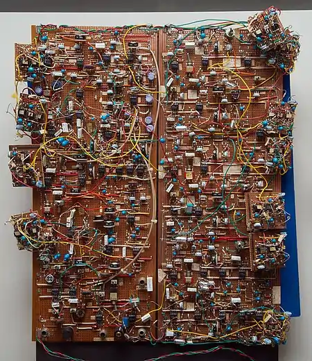 First prototype of Dolby SR encoder / decoder, built by Ray Dolby on perfboard.
