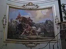By the 1820s, he had returned to the region of Trento, and he painted the altarpiece of the Duomo of Trento. He began painting devotional subjects in the northern provinces, in Arco, Rovereto and other sites.[3] He painted a canvas depicting the Murder of Archimedes (1815) now at the Museo Civico of Rovereto.[4] He painted a canvas depicting an Apparition of Madonna to Shepherds for the parish church of San Maurizio in Campodenno.[5] He also contributed a design for an engraving of Pope Pius VII Enters Rome On Morning Of June 7, 1815.