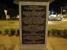 In late 2008, the Rotary Club of Griffith erected a memorial in Banna Avenue, the main street of Griffith, to honour the 30th anniversary of Mackay's murder.[17][28] The statue of Mackay itself is a white marble bust with a plaque inscribed with "All that is necessary for the triumph of evil is for good men to do nothing."