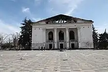 Donetsk Academic Regional Drama Theatre (Ukrainian: Донецький академічний обласний драматичний театр, romanized: Donetskyi akademichnyi oblasnyi dramatychnyi teatr) was a theatre in Mariupol in southern Ukraine. The modern theatre was constructed in 1960 in the approximate location of the former Church of Mary Magdalene.[3] The theatre was known as Donetsk Regional Drama Theatre before it was given academic status in November 2007.[1] It was largely destroyed by Russian military airstrikes on 16 March 2022,[2] resulting in the deaths of around 600 people.[4]