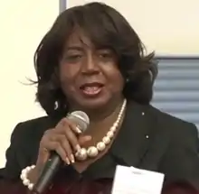 In August 2015, the slating committee of the Cook County Democratic Party narrowly voted to endorse Brown for reelection to a fifth term in the March 2016 primary elections.[14][15] In early October 2015, the Federal Bureau of Investigation executed a search warrant at Brown's home and seized her County-issued cell phone.[16][17] Chicago attorney Ed Genson represented Brown.[16] On October 23, 2015 the Cook County Democratic Party withdrew its endorsement of Brown, and endorsed Michelle A. Harris.[18][19][20]