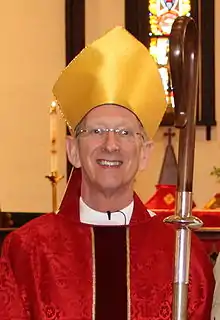 Douglas Hahn is an American prelate who served as the seventh Episcopal Bishop of Lexington. He was elected on August 18, 2012, and consecrated on December 15, 2012, in Lexington, Kentucky. He served until March 9, 2016, when he was suspended for one year for lying during the bishop interview process about past adultery with a parishioner.[1] In October of that year, the Standing Committee of the diocese asked that Hahn resign as head of the diocese.[2] In December, Hahn agreed to resign as of the end of his suspension, on March 10, 2017.[3]