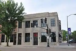 - 119 and 121 East Main Street: One of the newer contributing buildings in the historic district, this property was built in 1930 out of brown brick and contains two storefronts. It is a very simple one-story building with little decoration, except for some decorative brickwork on the parapet and window lintels.[2]: 14