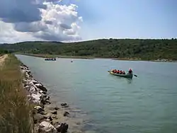 The Dragonja (pronounced [dɾaˈɡoːnja]; Italian: Dragogna) is a 30-kilometre (19 mi) long river[1] in the northern part of the Istrian peninsula. It is a meandering river with a very branched basin and a small quantity of water. It has a pluvial regime[2] and often dries up in summer.[3] It features very diverse living environments and is home to a number of animal and plant species.[4] The Dragonja has been a matter of a territorial dispute between Croatia and Slovenia, with its lowest portion de facto the border of the two countries.[5]
