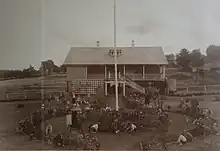 After World War I (WWI) there was a decline in Drayton's population despite the May 1915 opening of the deviation of the Southern railway line to pass through Drayton, but community involvement in the school remained strong, with improvements to the school grounds being a focus.[48] An additional 2 roods (0.2ha) of land was added to the Drayton school grounds in 1922 (allotment 5 of section 4).[49][50][51][52][53] During the Great Depression, relief workers levelled the tennis court site,[54] and funds were raised for a windmill and bore to supply reticulated water for the school gardens.[55][1]
