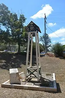 Consequently, Drayton State School's enrolments also increased, to about 200 pupils in 1878, requiring more accommodation and facilities, and enlargement of the school grounds for a head teacher's residence. The original school building was reused as the head teacher's residence until 1867 when it was demolished and replaced with a new residence. In 1873, the schoolhouse was extended with the addition of an infants' wing. The teachers residence was replaced three times: in 1867, 1877 and 1907. In 1877, the teacher's residence was replaced on the newly purchased Lots 21-24 of section 1, opposite the school on Darling Street. A play shed was erected within the school grounds in November 1878. A room was added on the western side of the schoolhouse in 1900. The teacher's residence was replaced in 1907.[23][24][25][26][27] By 1880, the school bell, reportedly donated by the local St Matthew's Church of England (1859) and dating from 1852 when it was installed at the parsonage, had been hung at the school. The bell was donated to the Church of England at Drayton by Mr Watson on 27 January 1852 and was temporarily hung on the verandah of the parsonage, which from November 1851 was used for services until a church was built.[28][29][1]