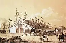 The opening of the temporary entrance building of the Bohemian station in 1851