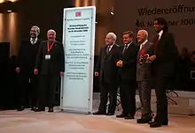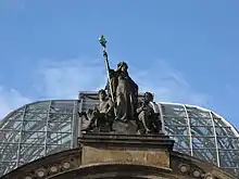 The renovated station in Dresden received the 2007 Renault Traffic Future Award for special transport architecture.[47] In addition, the architectural firm of Foster and Partners received a second place in the award of the Stirling Prize in the same year and in 2008 the new roof of the station hall received the Brunel Award, an award for railway design.[48] In August 2014, the station was given an award by Allianz pro Schiene entitled "Station of the Year in the category of large city railway station". The jury praised the station as being a "monument of a clear, lilting lightness."[49]