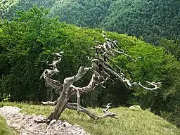 Drienok is a mountain in the Greater Fatra Range of Slovakia measuring 1,268 m (4,160 ft). The typical pyramidal shape of the mountain, which lies on the edge of the range, steeply rises over the Turiec valley and is easily recognizable from any direction. Under the summit there is an emblematic dead and dry tree.
