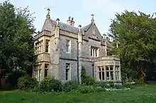 Stoke Lodge, built in 1836, is a Grade II listed building[8] and hosts the Stoke Bishop Adult Adult Education Centre. Alongside Stoke Lodge is a playing field, arboretum and a children's play park owned by Bristol City Council, the entire site has been held as education land since 1947. In 2011, the playing fields were long-term leased to Cotham School; these fields are the subject of a protracted legal dispute which reached the High Court in 2018 with the court quashing the decision of the Bristol City Council Public Rights of Way and Greens Committee to register the playing fields as a Town or Village Green in 2016.[9] Following the TVG application being rejected in June 2018 by the Public Rights of Way committee (in light of the findings of the court), Cotham School erected new signage on the site[10] and announced plans to fence the site[11] despite Ofsted confirming that it did not require perimeter fencing, as the school had repeatedly claimed.[12] The fence was finally completed in March 2019.[13][14][15]