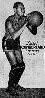 Roscoe Franklin "Duke" Cumberland (1913 – October 23, 1966)[1] was a member of the Harlem Globetrotters.[2] He averaged 6.9 points per game in the National Basketball League for the Chicago Studebaker Flyers.[3]