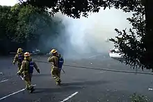 The minimum age to become a volunteer firefighter in the New Zealand Fire Service was 16, although those under 18 required parental consent.[5][6] Initial training was done within the local volunteer fire brigade at their weekly training nights and culminated in a seven-day residential recruit course, normally held at the National Training Centre (NTC) in Rotorua or the Woolston Training Centre in Christchurch. Training included hose drills, ladder drills, portable pumps, and breathing apparatus use (BA), which was carried out in BATB (Breathing Apparatus Training Building) and RFTB (Realistic Fire Training Building) simulators. The BATB is a gas-fired training facility and the RFTB is a live fire scenario.