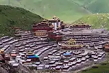 Among the great masters to have lived and taught at Dzogchen are Khenpo Pema Vajra (Wylie: mkhan po pad ma badz ra), Patrul Rinpoche, Jamgon Ju Mipham Gyatso and Khenpo Shenga.[2] It eventually grew into the largest Nyingma monastery of all time.[3]