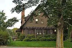 The E. C. Hammond House is a historic house at 35 Groveland Street in Newton, Massachusetts. The 1 3/4 story wood-frame house was built in 1909 and designed by its owner, Edward C. Hammond, a lumberman. The house is a simple but well-crafted and preserved example of Craftsman styling. It has a steep gabled roof, with a pergola porch across the front of the main façade. It retains its interior wood work and some original light fixtures.[2]