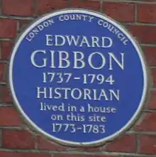 - ↑ O.S. 27 April. Gibbon's birthday is 27 April 1737 of the old style (O.S.) Julian calendar; England adopted the new style (N.S.) Gregorian calendar in 1752, and thereafter Gibbon's birthday was celebrated on 8 May 1737 N.S.