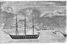 In the quarter century from 1845, some twenty Royal Navy ships took part in actions between Māori and Pākehā, with the colonial government taking up some commercial ships in supporting roles. Another contribution came on loan from Australia, in the form of the Victorian naval screw steam sloop Victoria, in the first Taranaki conflict of 1860–61. They and the East Indiaman Elphinstone provided gun and crew, to form militia units for fighting ashore. The ships served mainly as communication, transport and supply links between places of conflict but, more importantly perhaps, also served as real symbols of British authority in areas where conflict was close to breaking out, or already had.[15]