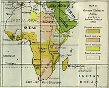 The outbreak of World War I in Europe led to the increased popularity of German colonial expansion and the creation of a Deutsch-Mittelafrika ("German Central Africa") which would parallel a resurgent German Empire in Europe. Mittelafrika effectively involved the annexation of territory, mostly occupied by the Belgian Congo, in order to link the existing German colonies in East, South-west and West Africa. The territory would dominate central Africa and would make Germany by far the most powerful colonial power on the African continent.[17] Nevertheless, the German colonial military in Africa was weak, poorly equipped and widely dispersed. Although better trained and more experienced than their opponents, many of the German soldiers were reliant on weapons like the Model 1871 rifle which used obsolete black powder.[18] At the same time the militaries of the Allied powers were also encountering similar problems of poor equipment and low numbers; most colonial militaries were intended to serve as local paramilitary police to suppress resistance to colonial rule and were neither equipped nor structured to fight against foreign powers.[19] Even so, the largest military concentration in the German colonial empire was in East Africa.