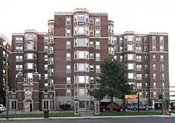 As the 19th century drew to a close and the 20th century began, the area around Jefferson Avenue became more industrialized. Wealthy residents, spurred by the availability of streetcar lines (and later, the automobiles), moved farther from the city center, leaving Jefferson Avenue behind. However, the booming city economy and influx of new residents in the 1910s increased demand for new housing. East Jefferson Avenue became an epicenter for new luxury apartment buildings, built particularly in the 1920s and 1930s.[2]