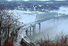 - Newell Bridge (1905–present) – Connects West 5th Street near East Liverpool City Hospital with West Virginia State Route 2. It is the only privately owned toll bridge on the Ohio River, owned and operated by the Homer Laughlin China Company out of Newell.[38]