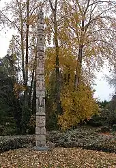 The 1971 Montlake Cut Waterside Trail runs through the park past the 40-foot totem pole shown at right on its way to West Montlake Park. A plaque at the bottom of the totem pole states that it was carved in 1937 by John Dewey Wallace, a Haida chief, in Waterfall, Alaska. The dedication ceremony for the donated totem pole took place in May 1983.