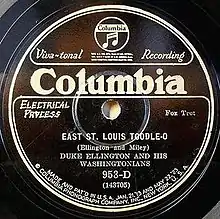 "East St. Louis Toodle-Oo" (also "Toodle-O" and "Todolo") is a composition written by Duke Ellington and Bubber Miley and recorded several times by Ellington for various labels from 1926–1930 under various titles.[1] This song was the first charting single for Duke Ellington in 1927 and was one of the main examples of his early "jungle music".[2] This composition (which entered the public domain on January 1, 2023[3]) was covered by Steely Dan on their 1974 album Pretzel Logic.