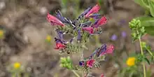 Echium tuberculatum is a species of flowering plant native to Portugal, Morocco, Algeria and Libya in the Iberian Peninsula and North Africa respectively.[1] This plant is a hardy garden perennial and it forms a sprawling mass of red flowers during the whole of the summer.