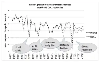 Rate of change of gross domestic product, world and Organisation for Economic Co-operation and Development, since 1961
