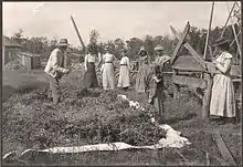 In 1851, a treaty opened land west of the Mississippi River to settlement allowing pioneers to settle in what is now Eden Prairie. Many early farmhouses remain in the town and can be found on the National Register of Historic Places. One of these early settlers was John Cummins, an Irish-born immigrant who built what is now known as the "Cummins-Phipps-Grill House" with his wife Mattie in 1880.[15] Manuscripts indicate that Cummins was an avid and respected horticulturist, scientist, and farmer; he used his farmland to experiment with different strains of apples and grapes to try to find one that could withstand the harsh climate in Minnesota.[16] The Cummins family sold this property to the Phipps family in 1908.[13]