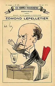 Lepelletier was born on 26 June 1846 in Paris.[1] He was born in the Monceau district of Batignolles. He received a classical education at the Lycée Bonaparte (now the Lycée Condorcet), then enrolled in the Faculty of Law, where he gained a Bachelor's degree. He never pleaded as a lawyer, and later became a publicist.[2] He married, and was the father of the playwright Saint-Georges de Bouhélier and of the wife of René Viviani. He fought 17 duels, was wounded, and only retained his limbs thanks to the surgeon Jules-Émile Péan. He defended the surgeon obstinately when he was viciously attacked by the press.[2]