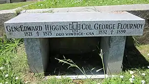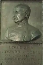 Edward Higgins entered the Confederate States Army on April 12, 1861, as a captain in the 1st Louisiana Artillery Regiment.[2] On June 12, 1861, he became aide-de-camp to Major General David E. Twiggs.[2] Higgins supervised the construction of the defenses of Ship Island.[3] On October 29, 1861, he was appointed captain in the CSA 1st Artillery Regiment.[2] Higgins resigned from this position on January 2, 1862, and on February 13, 1862, he was appointed lieutenant colonel of the 21st Louisiana Infantry Regiment.[1][4][5] Higgins was captured on April 28, 1862, while defending Fort Jackson and Fort St. Philip during the Union Army's attack on and occupation of the lower Mississippi River and New Orleans, Louisiana.[1][2][3] After a brief imprisonment, Higgins was exchanged on October 16, 1862.[2][3]