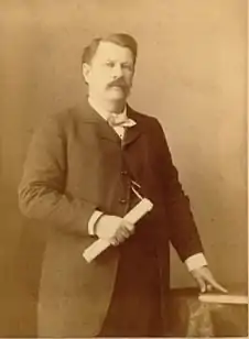 Part of Edward's mining fortune was used to pay off the debts of his older brother, Senator Thomas W. Ferry. Thomas had amassed millions in debts after his lumber and steel businesses went bankrupt. Edward Payson Ferry married Clara Virginia White, a second cousin who worked as a teacher. Clara died tragically in a horseback riding accident. They had two sons in the early 1870s of note. Their first son was William Montague Ferry, born on March 12, 1871, named after his grandfather, who had recently passed. This son later became president of the Utah State Senate from 1911 to 1915 and Mayor of Salt Lake City from 1915 to 1919.[2] His second son, Edward Steward Ferry, was born in 1872 in Grand Haven. He was an 1896 graduate of University of Michigan Law School. He became a prominent Salt Lake City attorney with influential political connections. Edward Steward Ferry participated in a US Supreme court case against his cousin, Henry Clay Hall Jr., in April 1913. His side lost the case.[7] He committed suicide on June 11, 1913. His body was brought back to Grand Haven, Michigan to be buried in the family plot.[8]