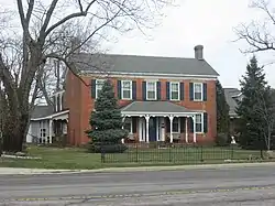 Built in 1855,[1] Smith's farmhouse is an I-house with substantial Greek Revival influence.[3] Both the walls and the foundation are brick, while the gabled roof is asphalt. Five bays wide in the front, the two-story residence features a porch in the middle of its first story; the main entrance and one window on each side face the porch.[4] Inside, important components include walnut-wood trim, a simple early stairway, and doorways with stencilwork. In 1875, the house was expanded with the construction of a vernacular Victorian addition, thus making the house a leading example of transitional 19th-century architecture in the area.[3]
