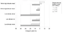 - ↑ Agnolucci, Paolo; Rapti, Chrysanthi; Alexander, Peter; De Lipsis, Vincenzo; Holland, Robert A.; Eigenbrod, Felix; Ekins, Paul (September 2020). "Impacts of rising temperatures and farm management practices on global yields of 18 crops". Nature Food. 1 (9): 562–571. doi:10.1038/s43016-020-00148-x. hdl:20.500.11820/683ec46f-f944-460f-9b71-8cc6ae1872cf. ISSN 2662-1355. PMID 37128016. S2CID 229528768.