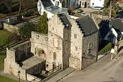 The manse of Duffus (in its earlier wooden form) had hosted two kings. The first was Edward I of England on 10 and 11 September 1303 after the castle became unusable and then to the Scottish king James II in 1455.[84] As already stated, the manse of the precentor, mistakenly called the Bishop's House,[85] is partly ruined and is dated 1557 (Fig. 2). Vestiges of the prebendary of Inverkeithny's manse and the Archdeacon's manse (Fig. 3) are now part of private buildings.[86]