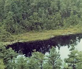 Ell Pond is a kettle hole in Hopkinton, Washington County, Rhode Island. It is surrounded by a swamp of red maple and Atlantic white cypress, and by steep granitic monadnocks. The small area contains communities of both hydrophytic and xeric plants, which makes it ideal for ecological research and education. It was designated a National Natural Landmark in May 1974.[1] In 1972, The Nature Conservancy purchased 50 acres (20 ha) including the pond to extend 218 acres (88 ha) of protected land owned by the Audubon Society of Rhode Island and the 1,002 acres (405 ha) of Rockville Wildlife Management Area owned by the state.[2] The preserve is jointly managed by all three entities. There are hiking trails in the preserve, but Ell pond is specifically not reachable due to its fragile environment.
